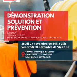 ÉVÉNEMENT – Würth et CMA Formation Auch Démonstration, Solution et Prévention (Bâtiment, Travaux Publics, Maintenance Véhicules Poids Lourds, Légers & TP) Jeudi 27 novembre de 14h à 19h – Vendredi 28 novembre de 9h à 16h Centre Economique du Garros,…