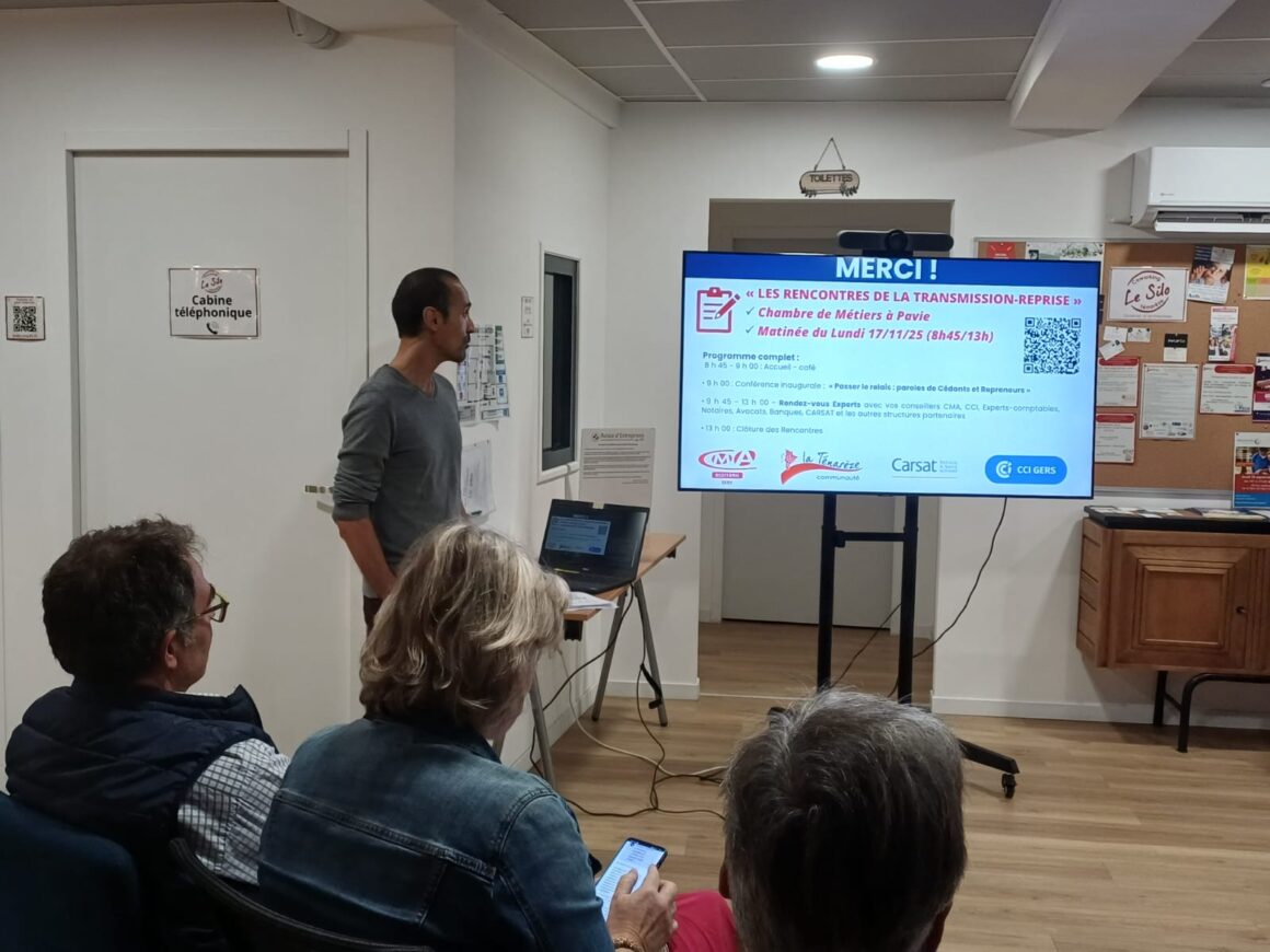 Ce lundi, nous avons réuni avec la CCI du Gers des dirigeants pour échanger sur les bonnes pratiques et les étapes clés de la transmission de leur entreprise.