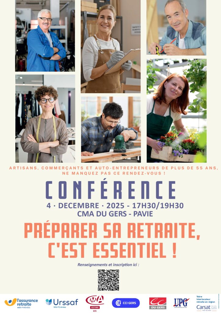 Conférence gratuite en partenariat avec la Carsat Midi-Pyrénées, l’Urssaf Midi-Pyrénées, la CCI du Gers, l’Union Patronale du Gers, le groupement des Experts Comptables du Gers et le Groupement d’Employeurs Gers en Gascogne pour vous aider à comprendre vos droits et préparer votre retraite.Au programme :